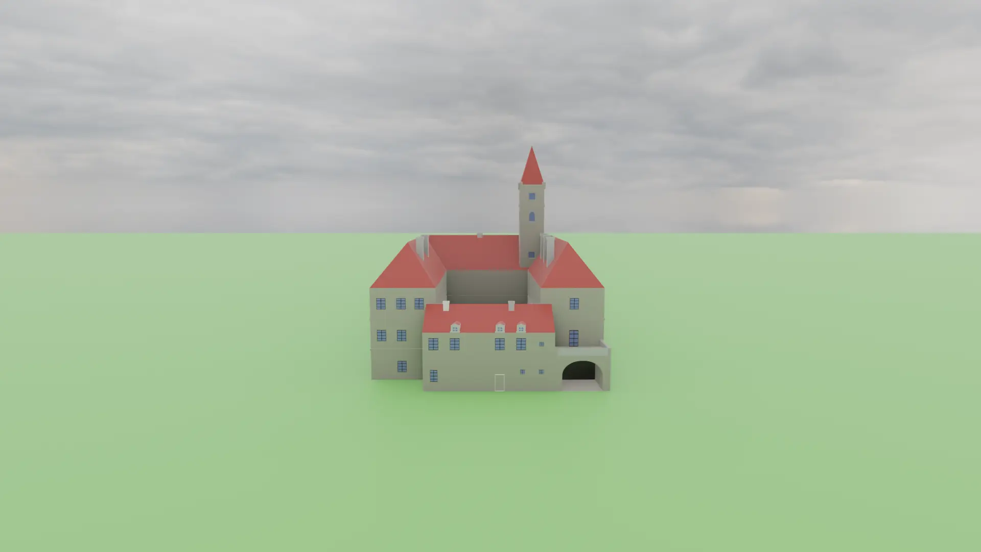 Tento obrázek ukazuje porovnání skutečné podoby Hrádku u Nechanic s jeho low-poly 3D modelem. Vpravo vidíte reálnou stavbu, zatímco vlevo je její stylizovaná digitální rekonstrukce. Tento zjednodušený model zachycuje hlavní tvary a proporce budovy, což umožňuje efektivní vizualizaci architektonických prvků a snadnější práci při dalším zpracování.
